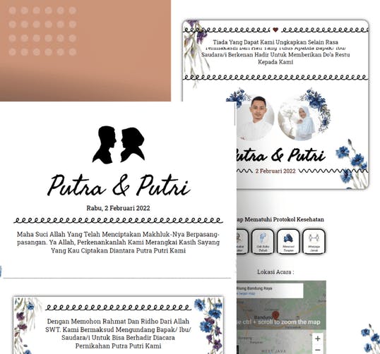 Kumpulan template landing page 100% canva yang bisa digunakan untuk membuat landing page dengan tema invitasi atau undangan wedding pernikahan.